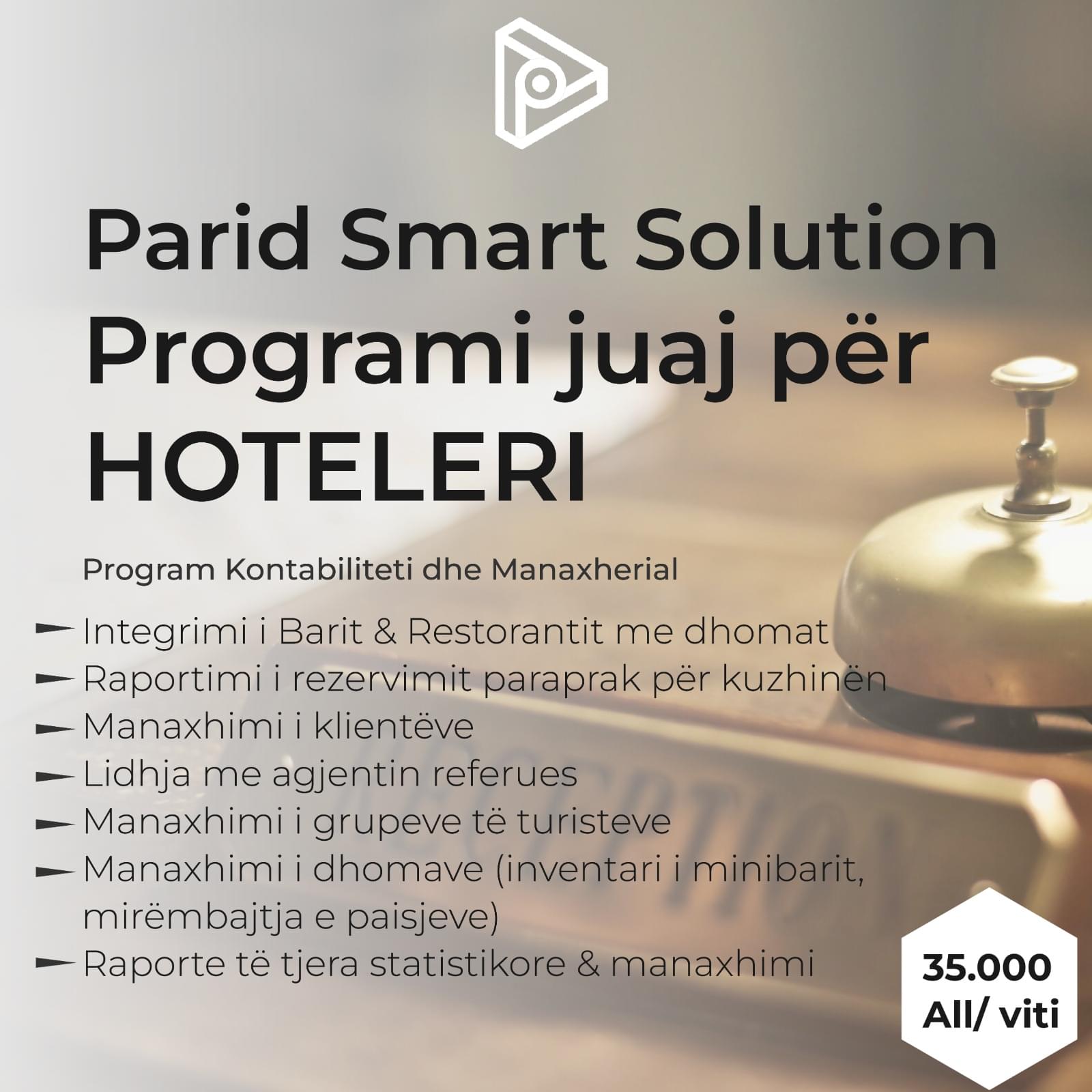 PARID SMART SOLUTION është një zgjedhje inovative dhe e përshtatshme për Bizneset që duan një sistem tërësisht funksional dhe të kujdesshëm , duke përfshirë programin e kontabilitetit, manaxherial, dhe të fiskalizimit. Programi vjen në versionin desktop dhe në versionin web, me server qëndror.